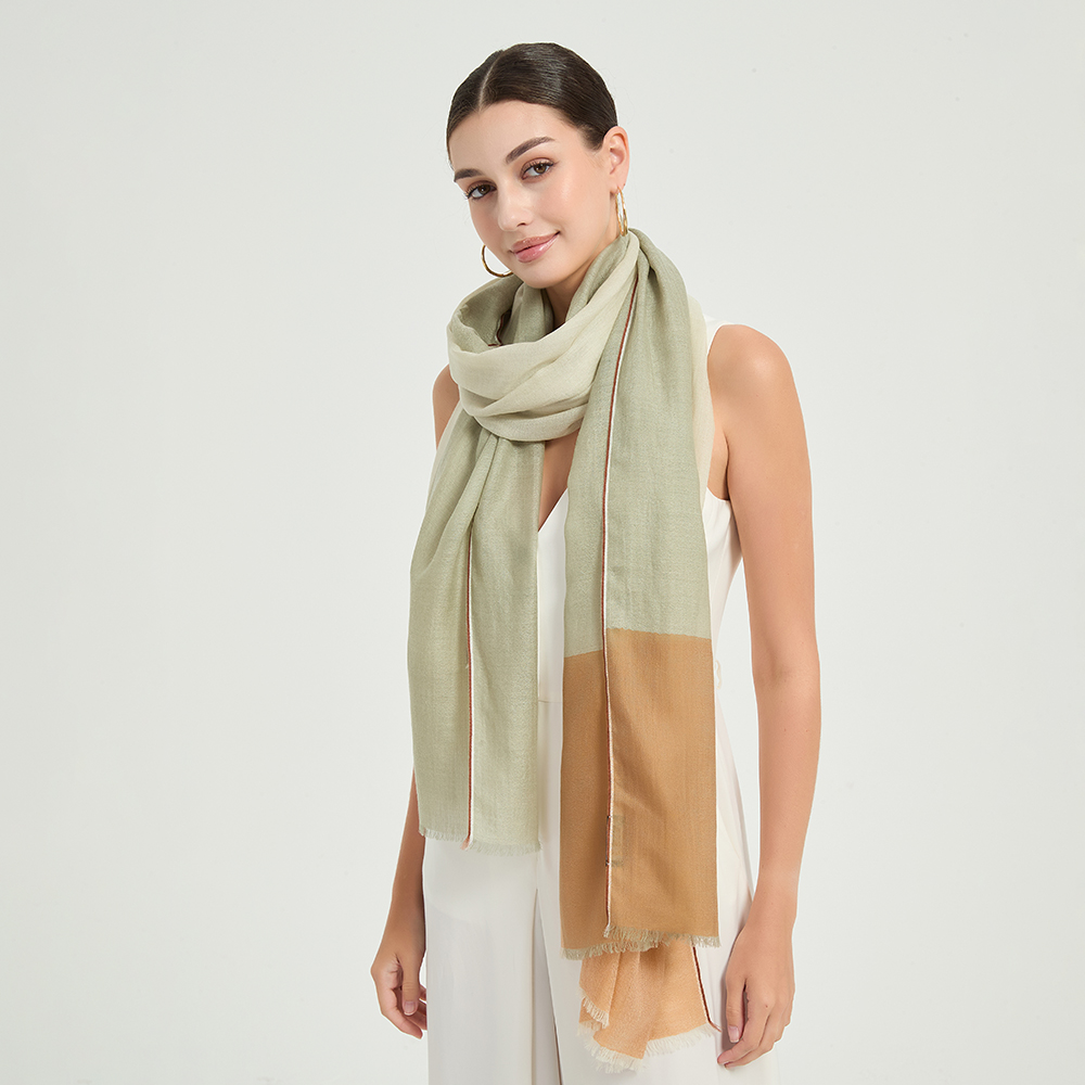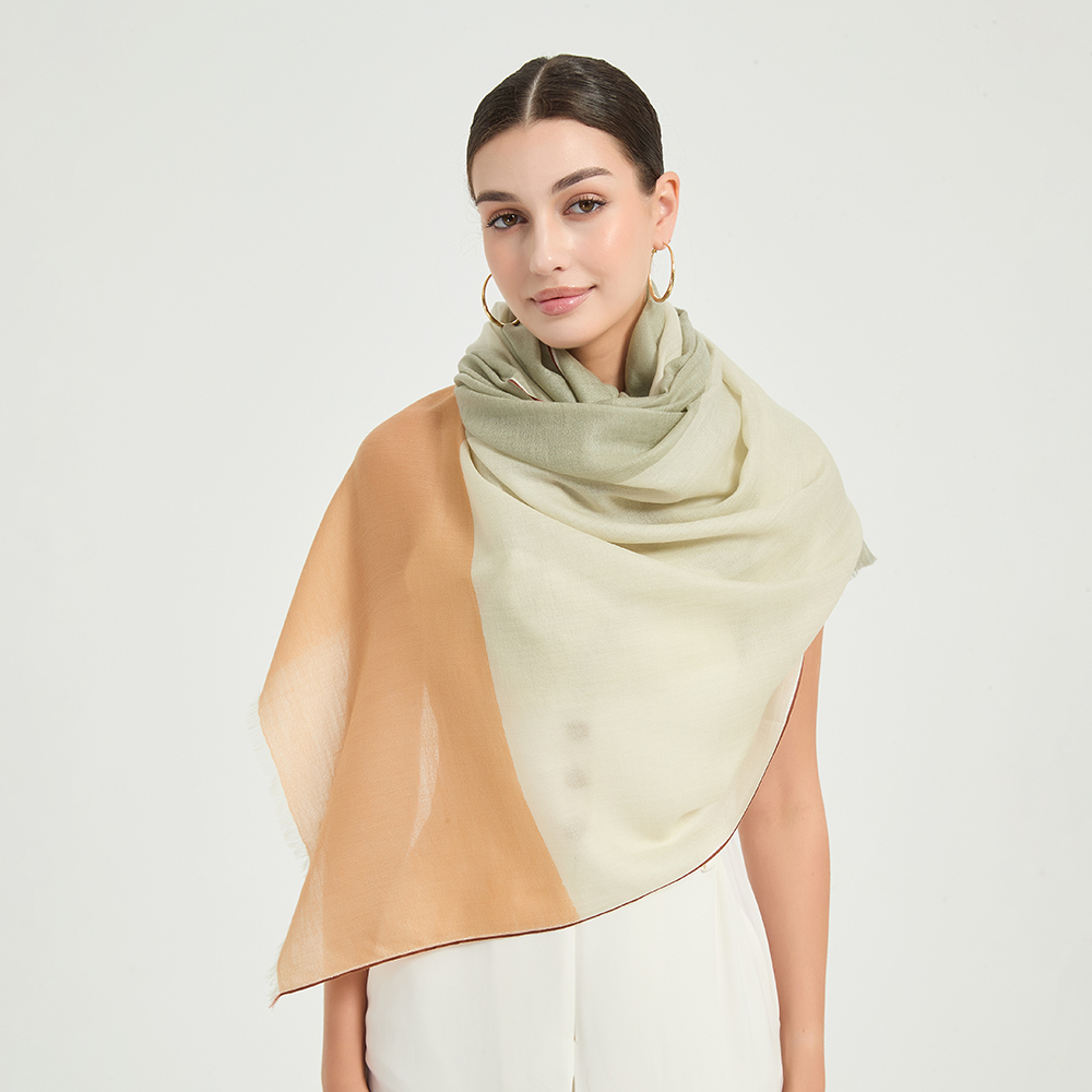 Der Schal Celia wurde mit Blick auf Komfort und Eleganz entworfen. Er ist aus weicher Lammwolle gefertigt und bietet leichte Wärme und Schönheit zu allen Jahreszeiten, während das moderne Farbblock-Design jedem Outfit einen modernen, künstlerischen Touch verleiht.