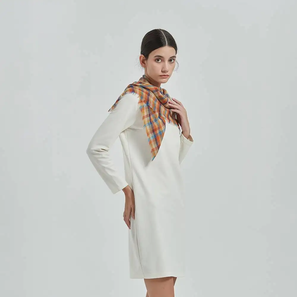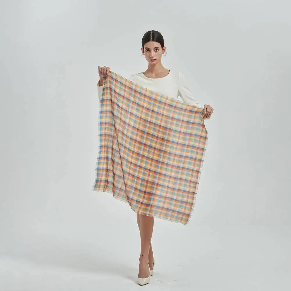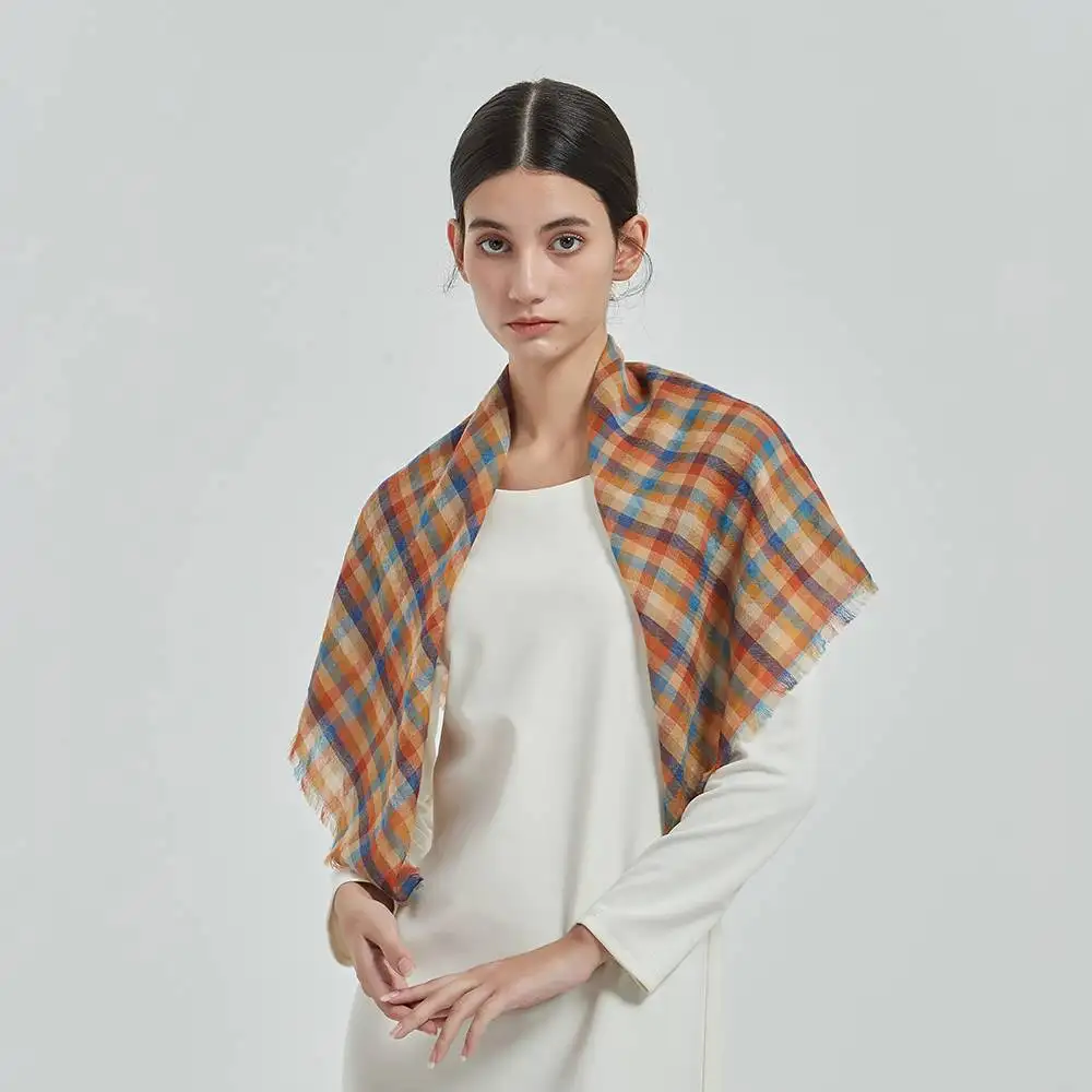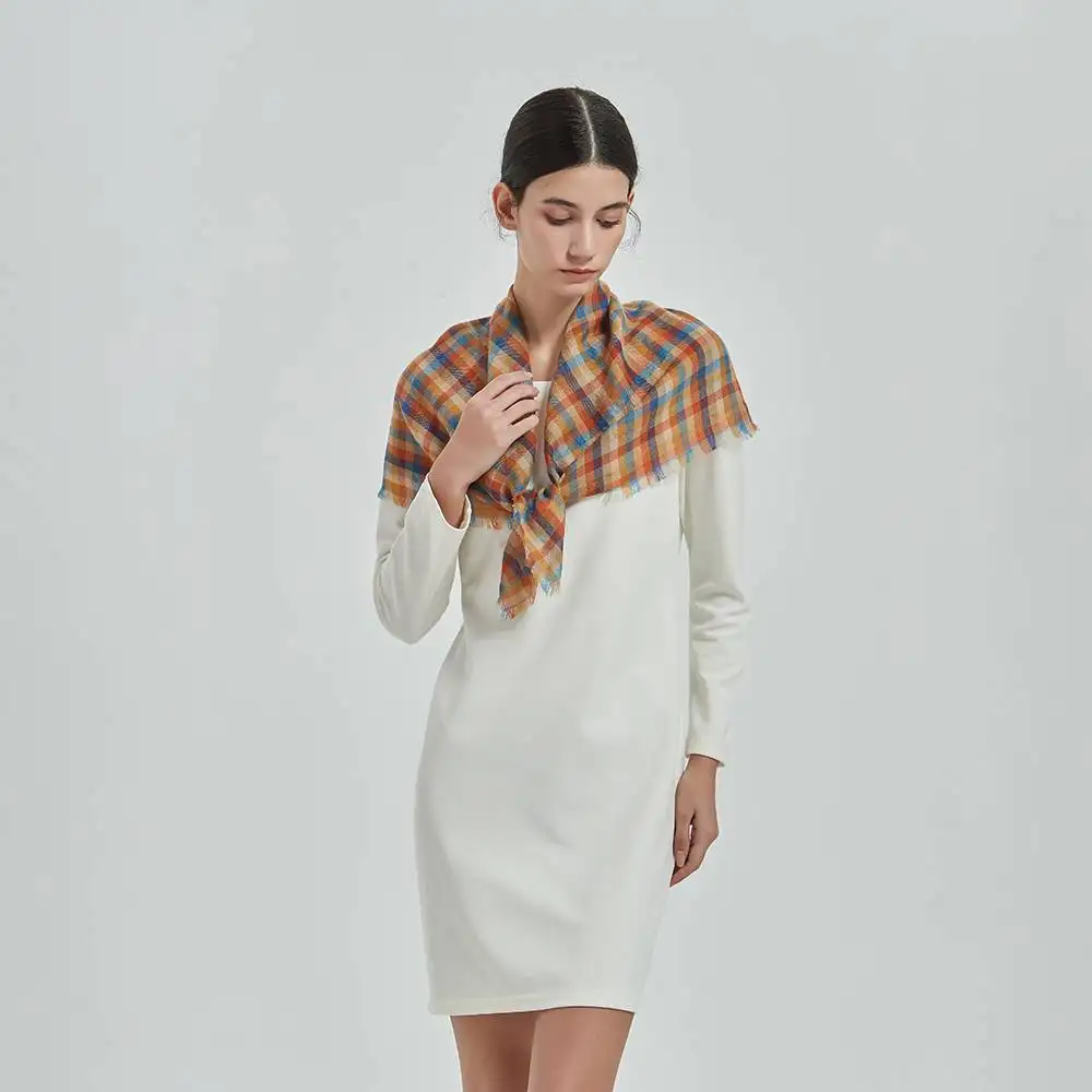 Our scarves are crafted from 100% Grade A cashmere sourced in Inner Mongolia. The cashmere fibers measure between 14 and 15.5 microns, making the scarf incredibly soft and lightweight.