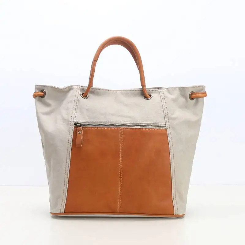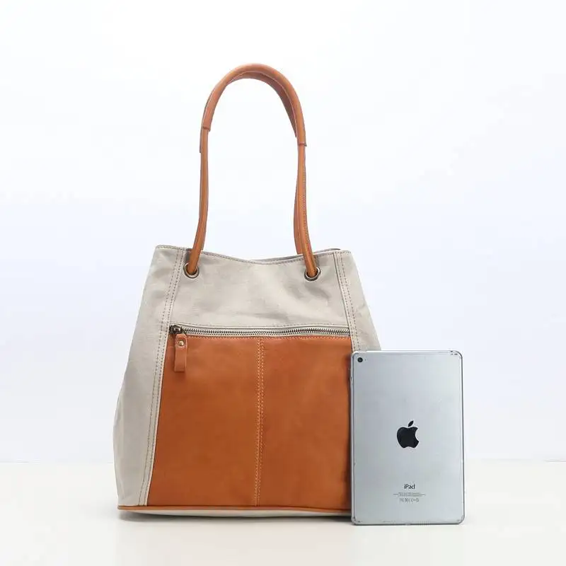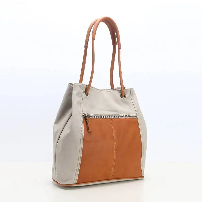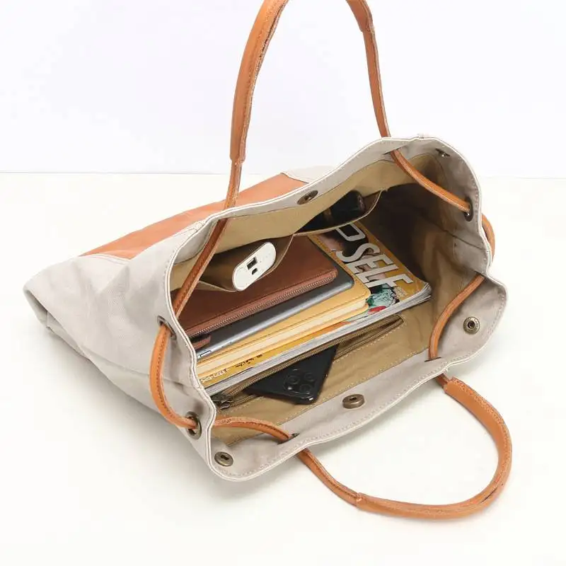 Amita Cotton Canvas Tote bag With Vegetable Tanned Leather Trim