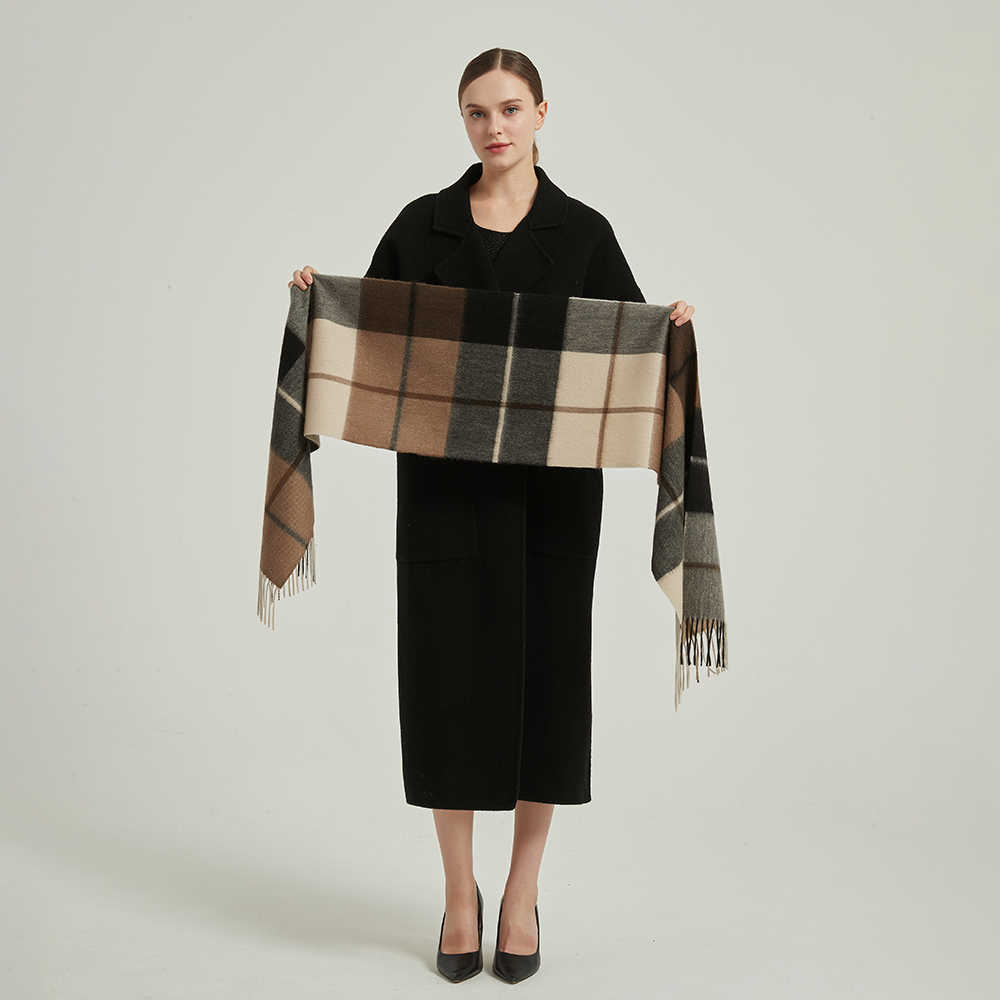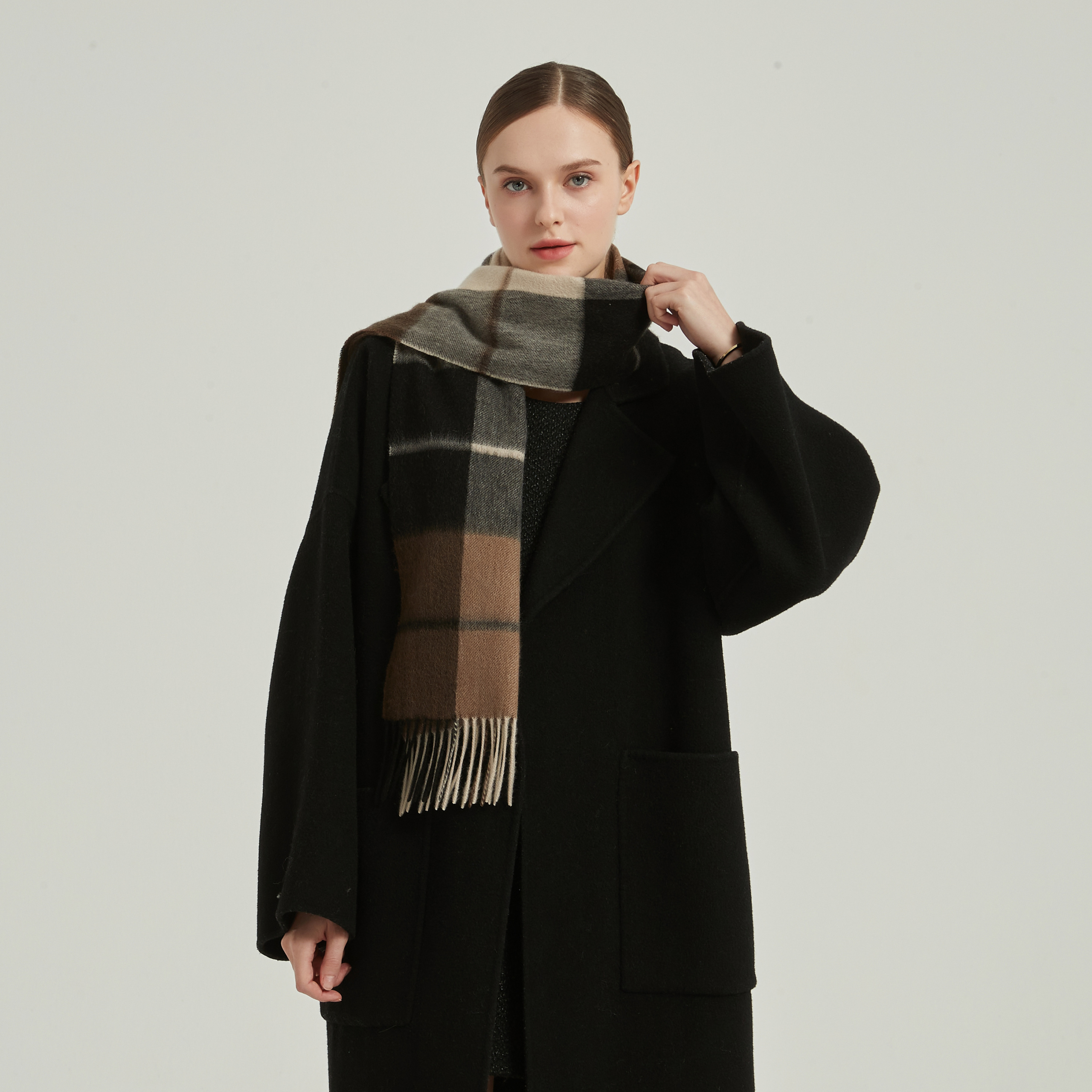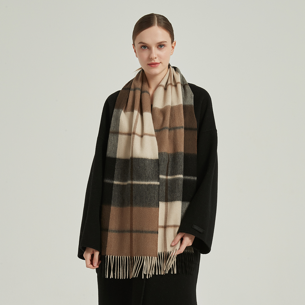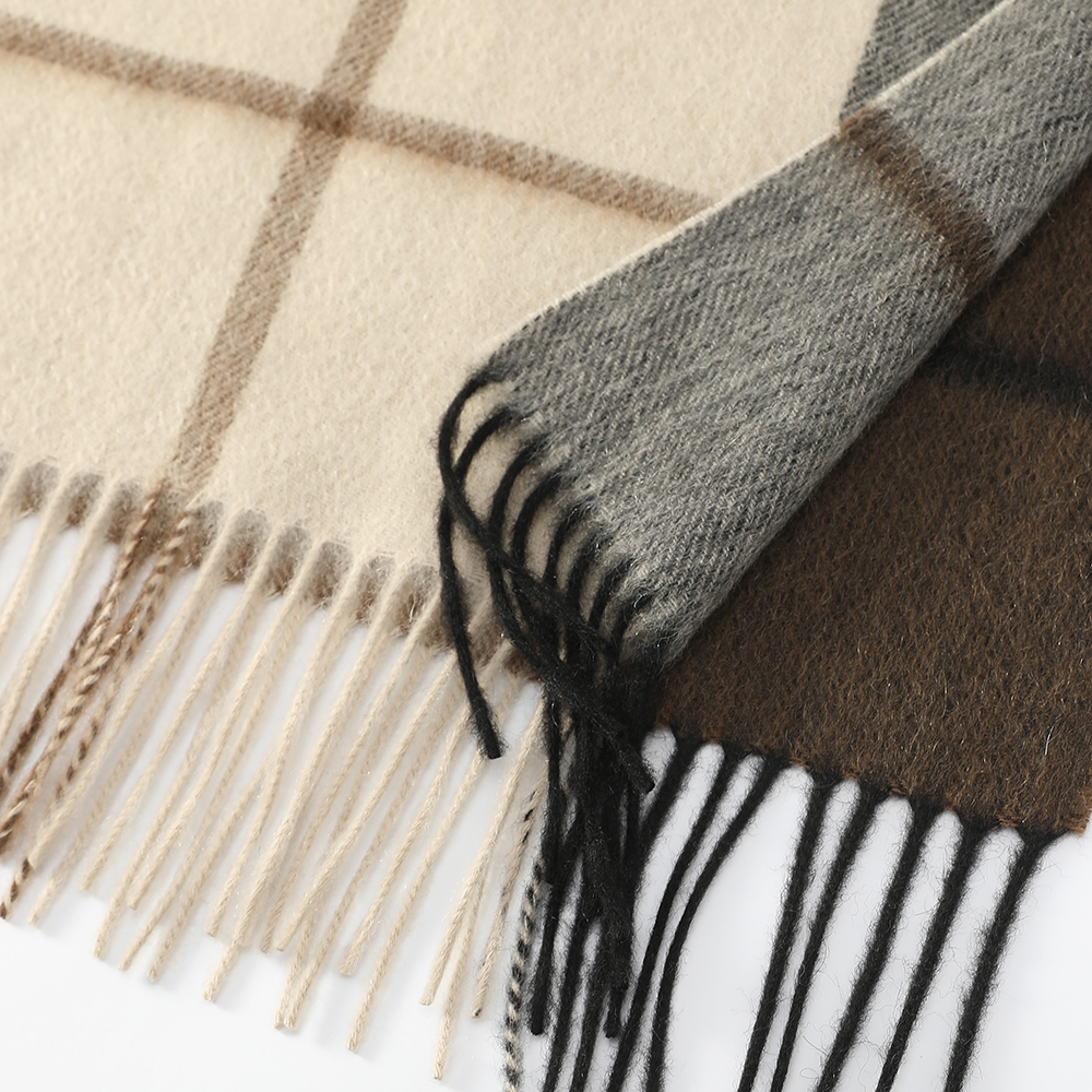 Cette écharpe à carreaux est idéale pour égayer votre tenue de la saison froide. Confectionnée en cachemire mongol de qualité A à 100 %, Cet accessoire est orné de houppes exagérées. Portez-le sur les épaules ou autour du cou pour rehausser votre jeu d’accessoires cette saison en un instant.