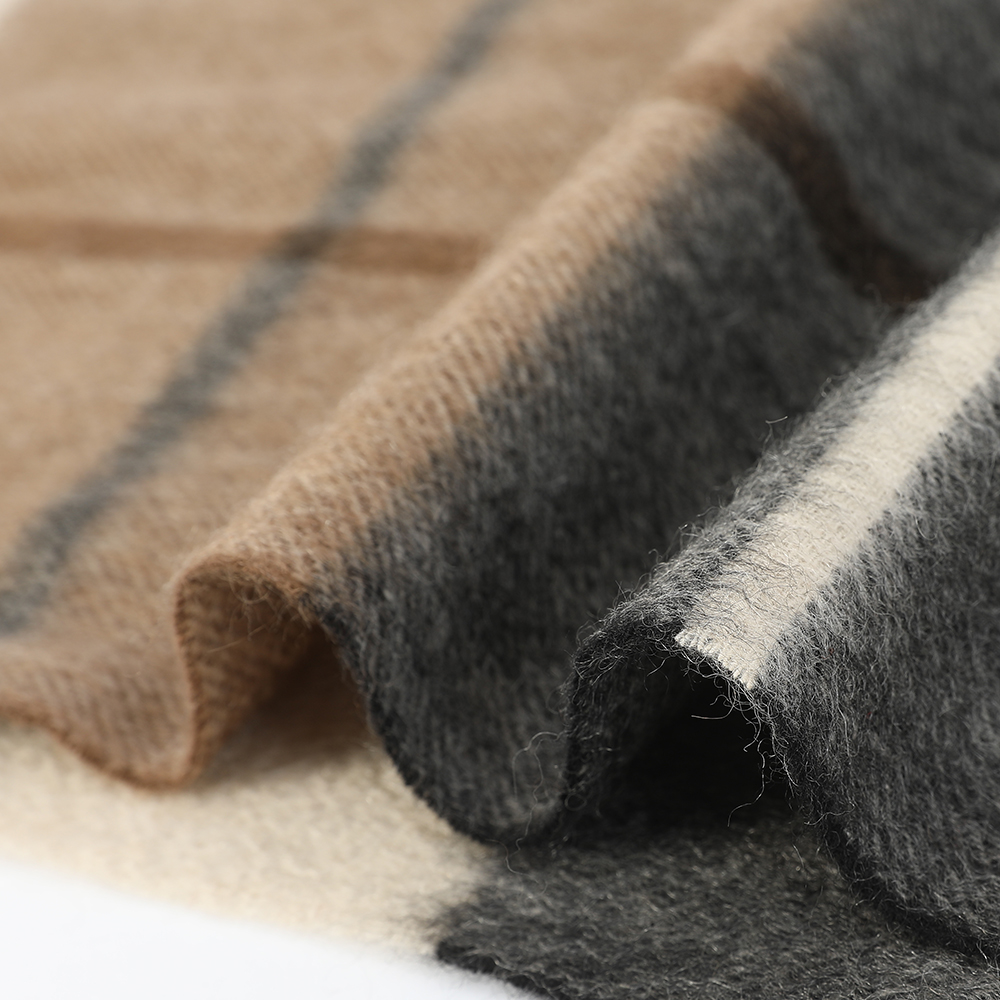 Our scarves are crafted from 100% Grade A cashmere sourced in Inner Mongolia. The cashmere​ fibers measure between 14 and 15.5 microns,​ making the scarf incredibly soft and lightweight.