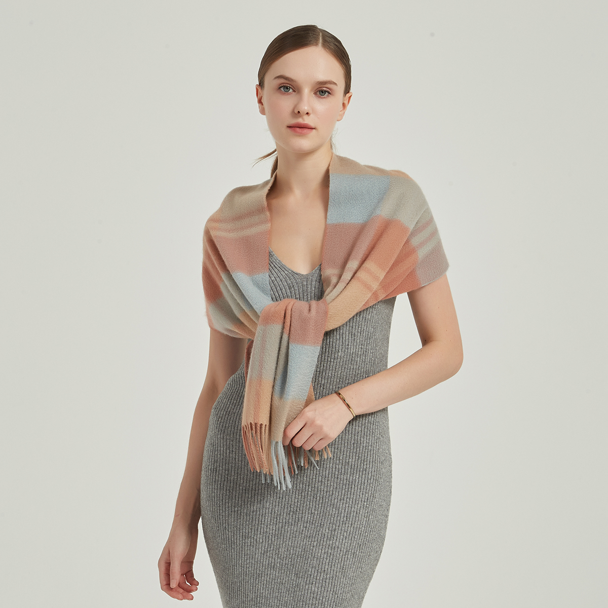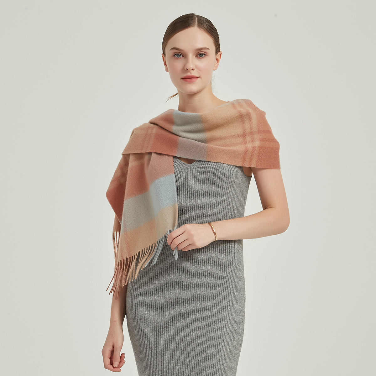 Écharpe en cachemire à carreaux Ember