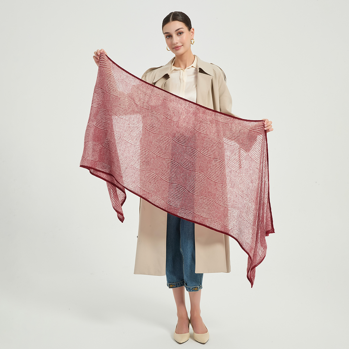 Écharpe en cachemire Elora Airweave – Bourgogne