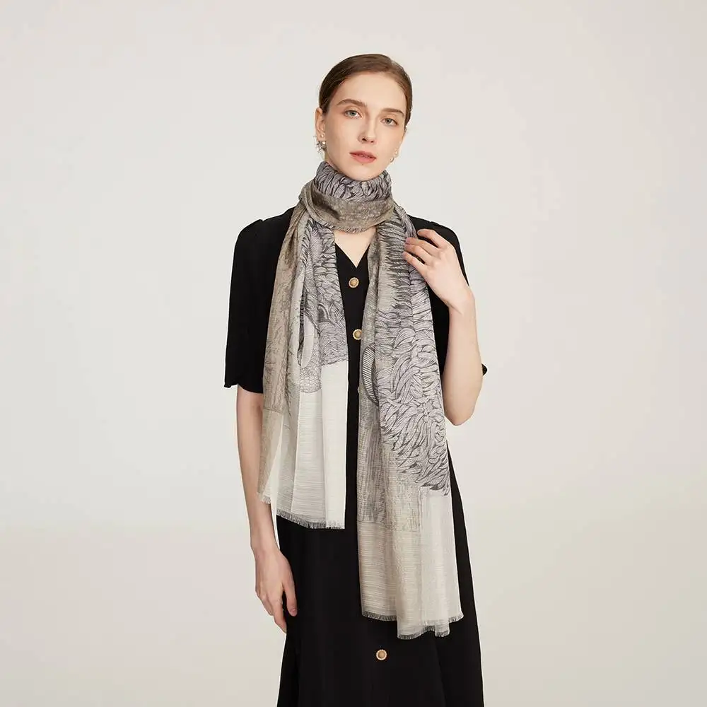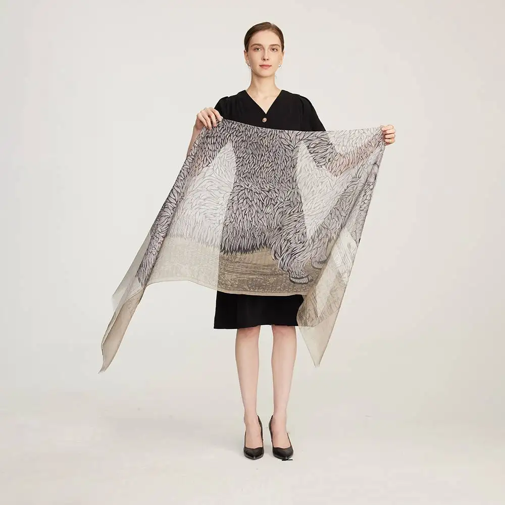 Avia Buffalo – Sciarpa di seta con frange – Wrap