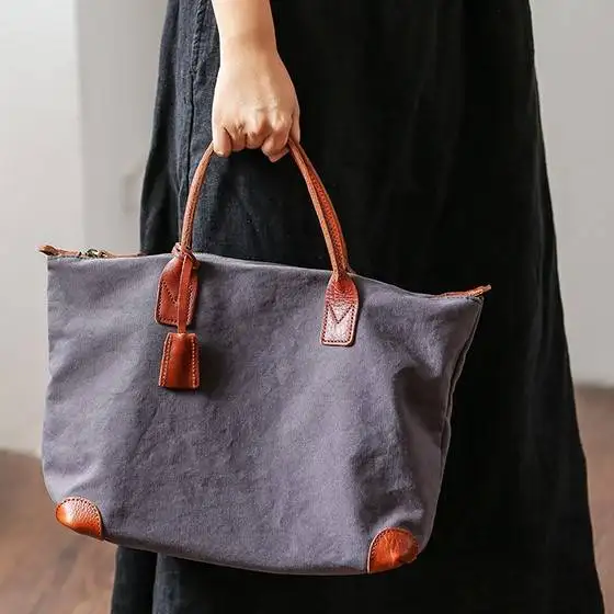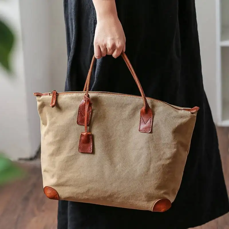 Eny Cotton Canvas Tote bag With Vegetable Tanned Leather Trim