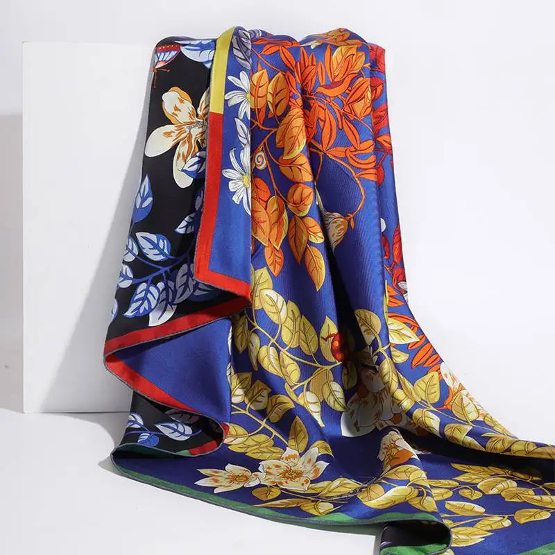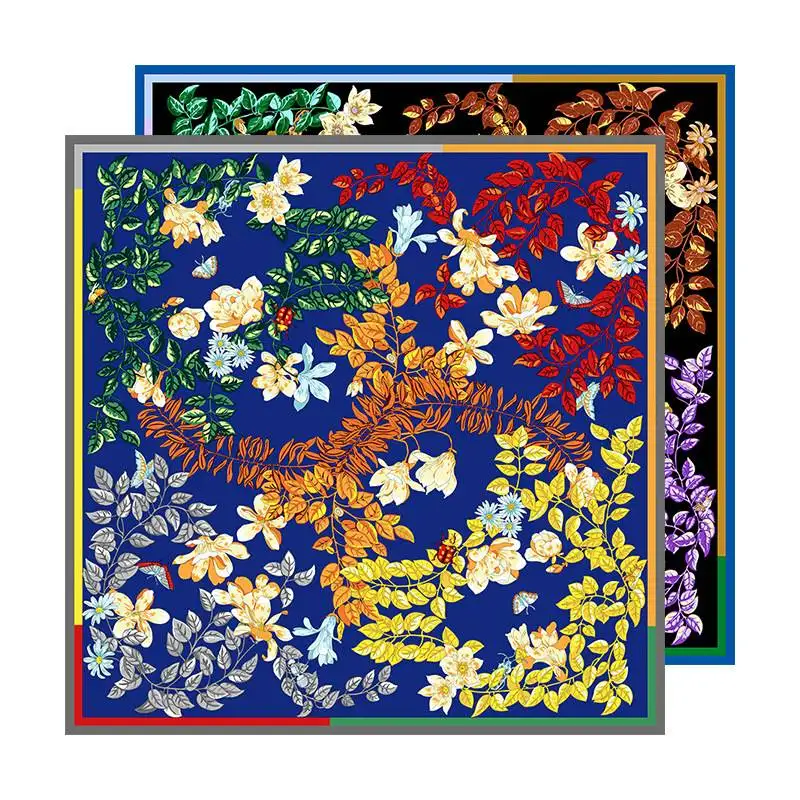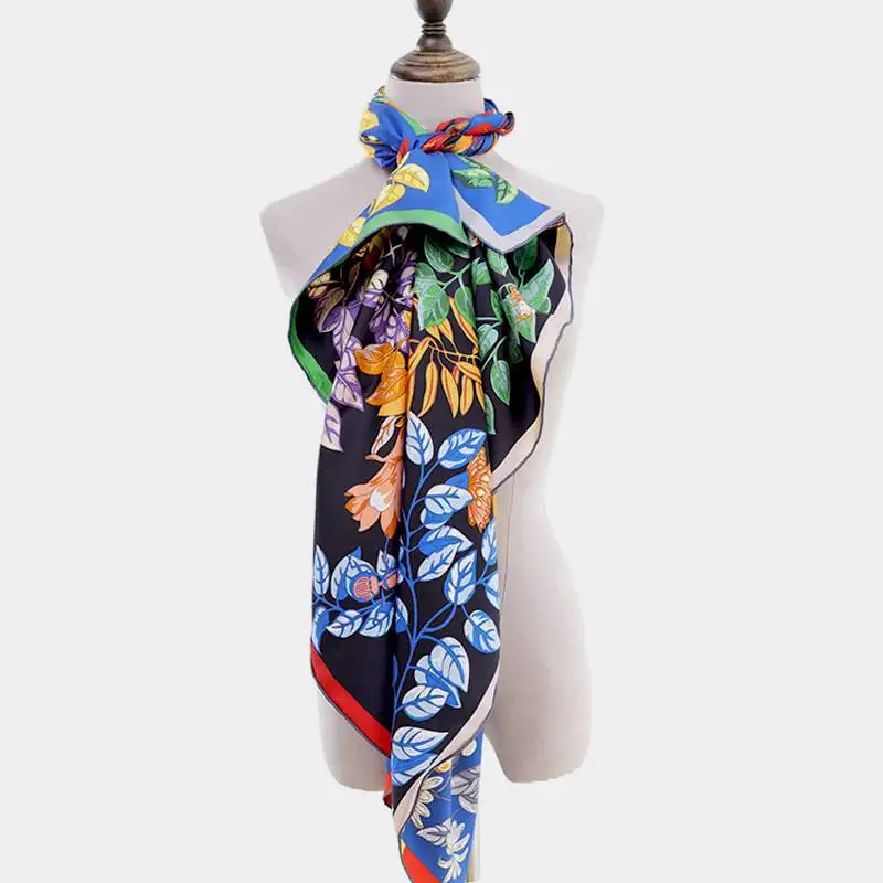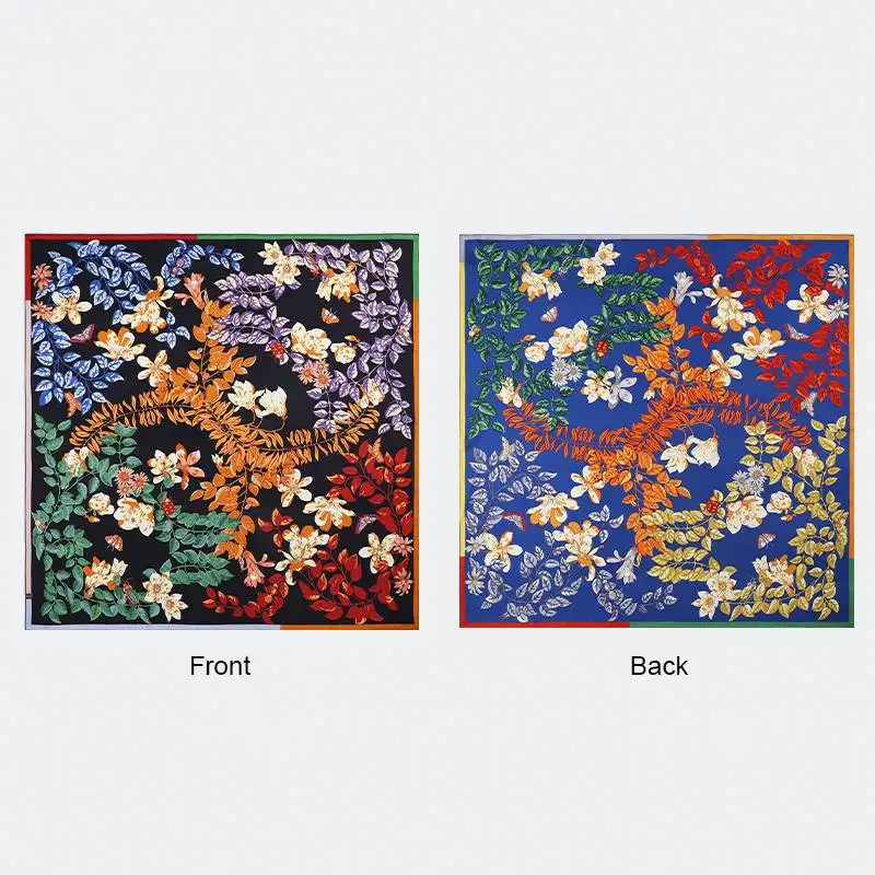 Muni Two-side FLoral Print Large Square Silk Scarf Wrap
