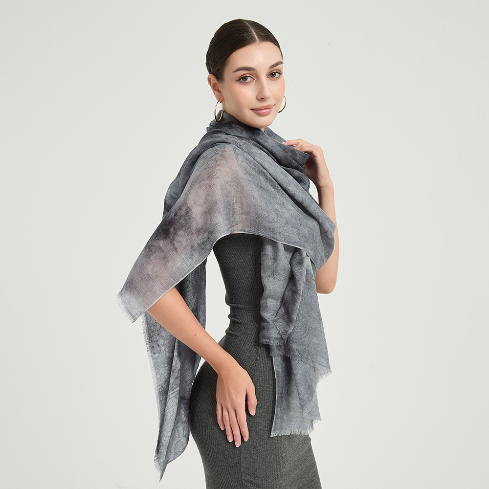 Sciarpa avvolgente in lana d’agnello Elia Featherlight – Grigio scuro
