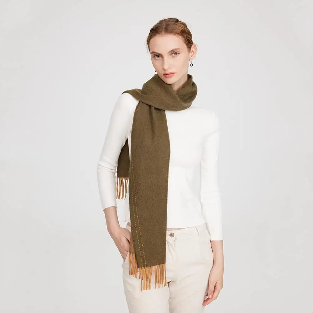 2 reviews for Deva Reversible Cashmere Scarf – Olive Green
