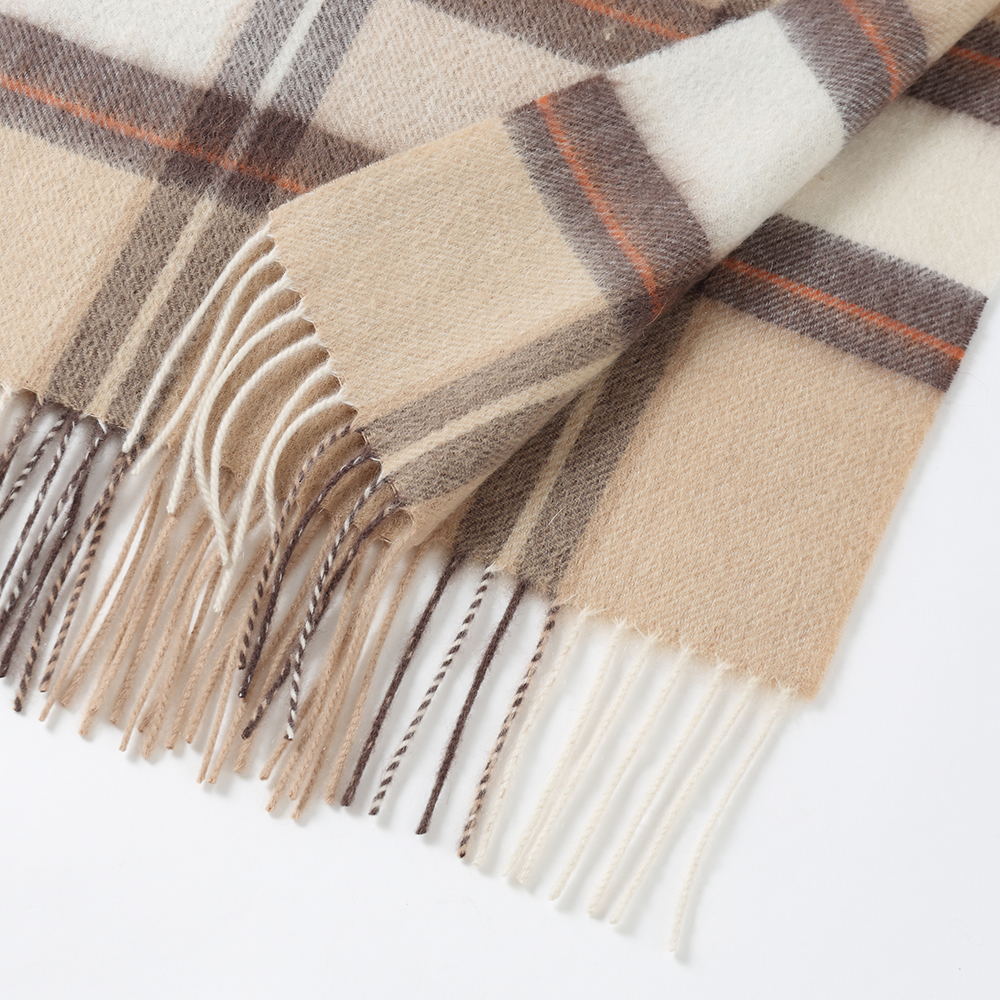 Yona Pure Cashmere Check Tasseled Scarf – Brown